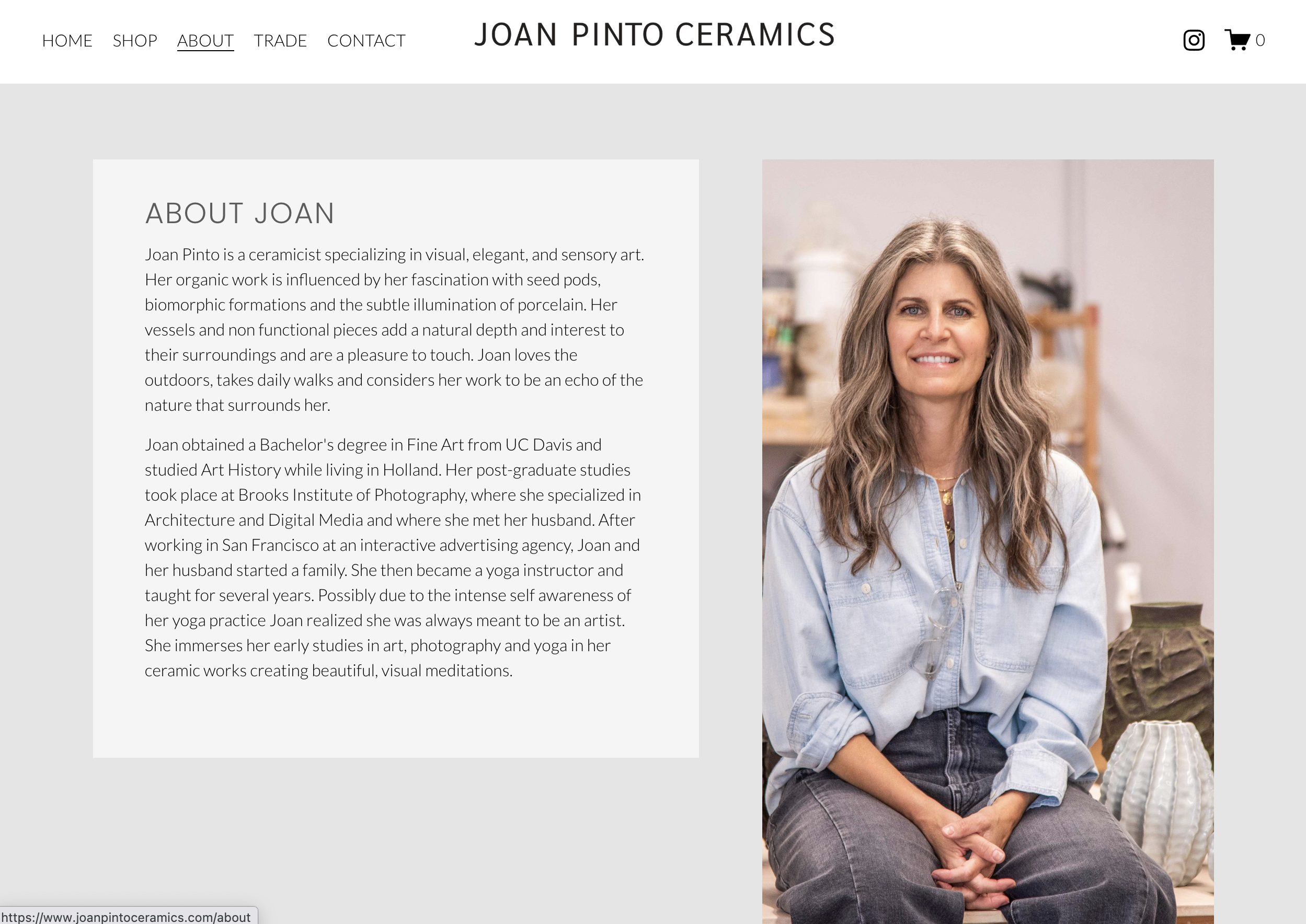 Joan had a growing collection of handbuilt ceramic work, but her Wix site was becoming limiting. She wanted a quieter, more refined online home one that reflected her aesthetic and was easier to manage. The goal: migrate to Squarespace without losing the spirit of the original site, and create a smooth, reliable shop experience for collectors.